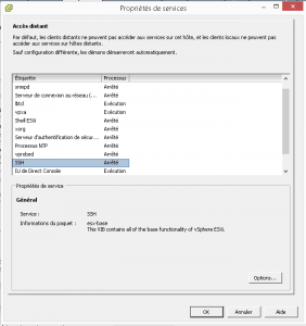 Sélectionner SSH et clicker sur « Options »